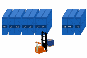 โหมดช่องเดินเต็มความกว้างช่วยให้รถยกเข้าถึงช่องทางเดินได้อย่างรวดเร็ว เมื่อใช้ร่วมกับรางนำทางและรถยก 3 ทางหรือรถหยิบสินค้า ความกว้างของช่องทางเดินจะลดลงได้อีก