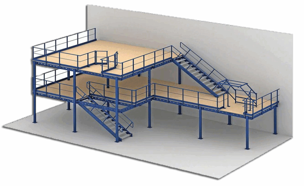 Mezzanine Floor (No Office) ชั้นลอยอเนกประสงค์ โครงสร้างชั้นลอยแบบนี้เป็นโครงสร้างที่แข็งแรงสามารถรับน้ำหนักได้ตั้ง แต่ตารางเมตรละ 300-3000 กก. สามารถต่อเติม ดัดแปลง หรือรื้อย้ายได้ง่ายดาย ออกแบบมาเพื่อแก้ปัญหาการจัดเก็บภายในโรงงานได้ดีเยี่ยมสามารถติดตั้งได้ทั้งพื้นที่โล่ง และพื้นที่ที่มีเครื่องจักร หรือพื้นที่ที่มีการปฏิบัติงานอยู่ โดยแทบไม่ต้องเคลื่อนย้ายเครื่องจักร สินค้า หรือบุคลากรหนี เว้นแต่บริเวณที่ตั้งเสาอีกทั้งประหยัดเวลาในการติดตั้ง เพราะสามารถติดตั้งเสร็จได้ภายใน 3-7 วัน (ขึ้นอยู่กับขนาดของชั้นลอย) และสามารถเพิ่มอุปกรณ์อำนวยความสะดวก อาทิ ลิฟท์ขน ส่งสินค้า หรือดัดแปลงพื้นที่บางส่วนเป็นสำนักงานได้อีกด้วย