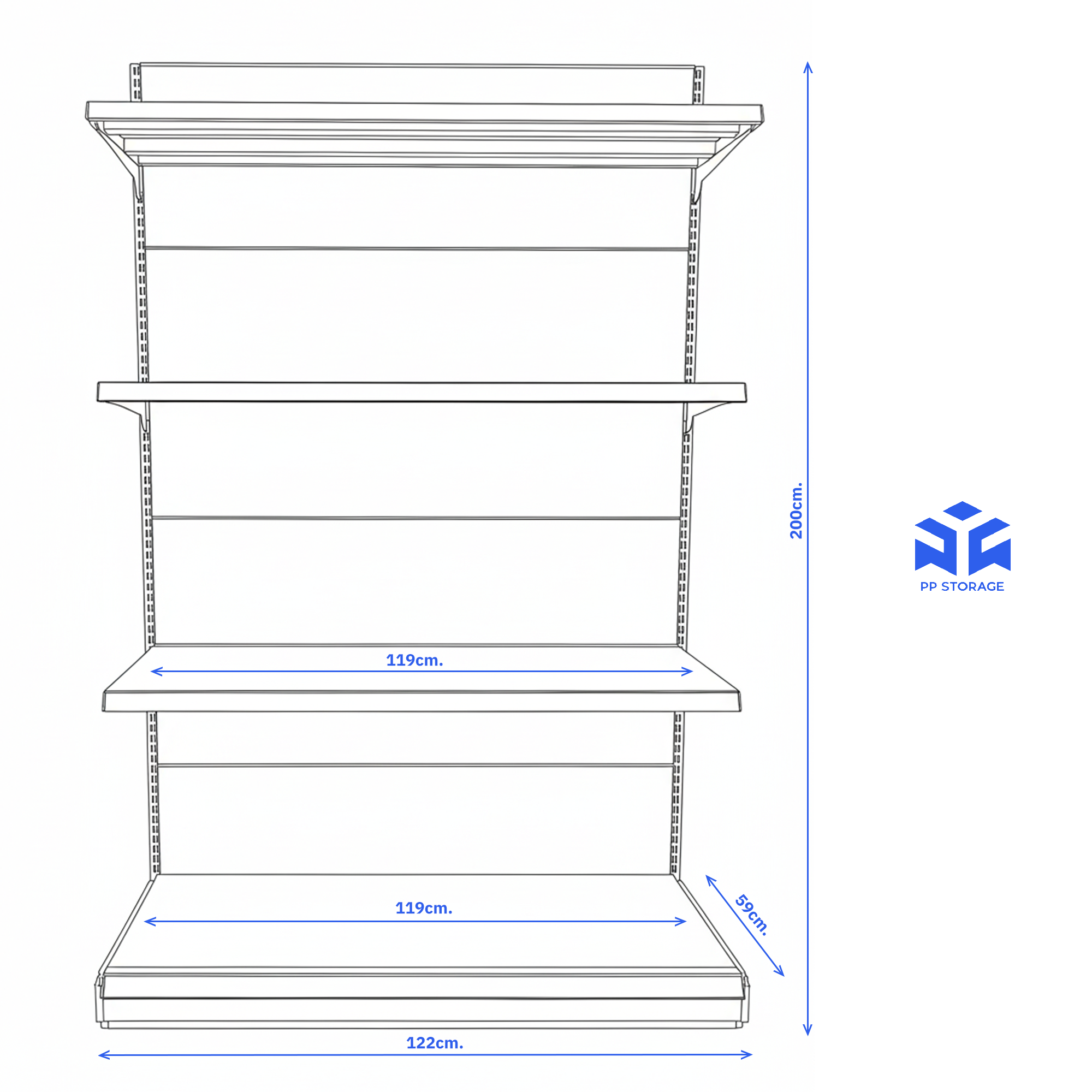 ชั้นมินิมาร์ท รุ่นหลังทึบ สีขาว รับน้ำหนักได้ 100 Kg. ต่อชั้น