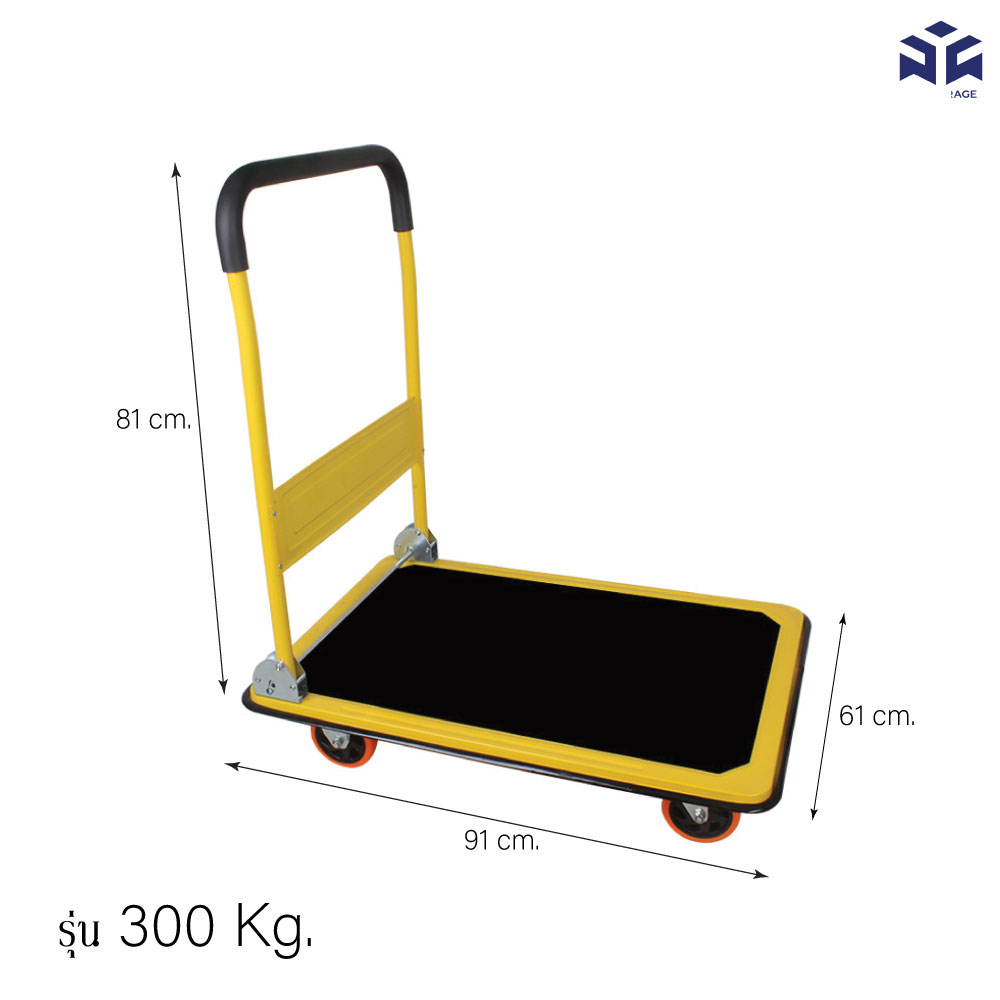 รับน้ำหนักได้ 300กก. พื้นรถเข็นเป็นเหล็กแข็งแรงและมียางกันลื่น